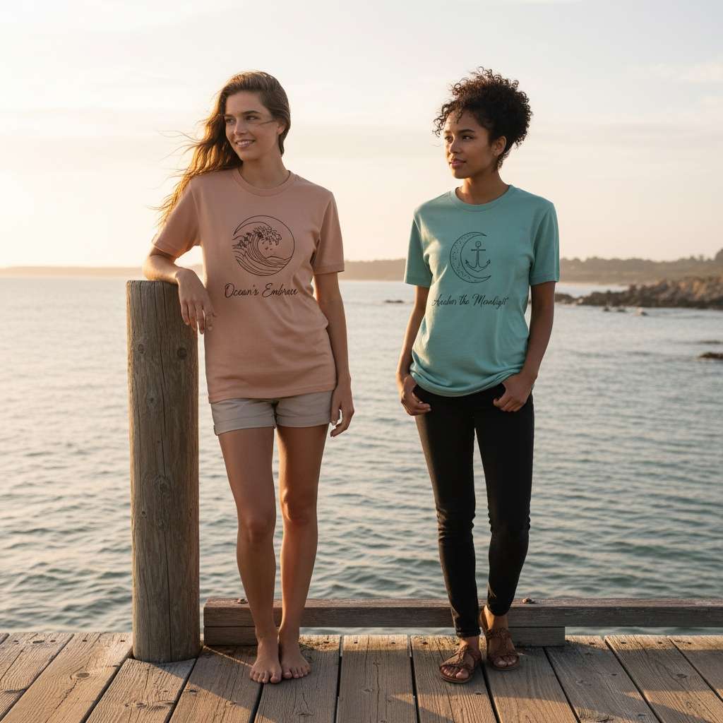 Woven for the wanderer and the rooted alike, our tees offer a natural drape and gently lived-in feel — soft as seafoam, sturdy as driftwood. Whether you're journaling by the shore or moving with the tide, this is comfort that stays with you.
